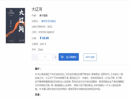 1)再次点击图书,进入图书详情页,可查看图书详情、MARC信息、电子书在线试读等;