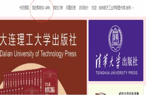 5、我的购物车:在页面最上方点击“我的购物车”,查看已经选购的图书;