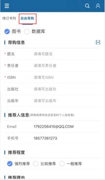 为及时接收荐购图书相关信息,请读者务必完善推荐人信息(邮箱及手机号)。