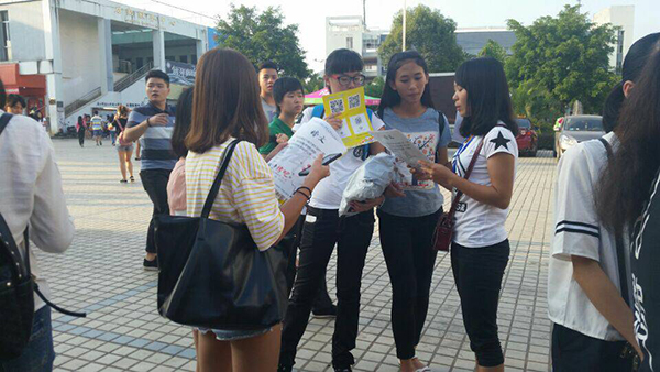 9月15日12:00开始,我院弘毅读书社便在食堂小广场进行宣传招新。读书社采取了多种形式来宣传此次的招新活动,如在食堂广场设点进行现场答疑、发宣传单和张贴宣传海报等。在招新的几天,炎炎烈日,但弘毅读书社会干都能各司其职、积极主动地投入到招新的活动中,各项工作有条不紊地展开。