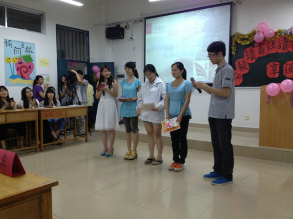 读书能够荡涤我们那颗浮躁的尘埃污秽之心,过滤出一股沁人心脾的灵新之气,甚至还可以营造出一种超凡脱俗的娴静氛围。秉承读书的优良传统,伴随着浓郁书香的脚步, 5月17日,弘毅读书社在1208教室隆重举行了“月游书苑,盈车嘉穗”第四届读书月颁奖晚会暨读书月闭幕式。参加本次活动的嘉宾主要有弘毅读书社的指导老师梁莉冰老师、黄鹭老师、吴义祥学长、院团委、广播站、记者团、志强社、大学生就业与创业协会等兄弟协会,以及弘毅读书社会员、上一届的弘毅会干、读书达人、社团活动积极分子和在读书月活动中的各项获奖人员等。