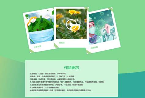 (1) 内容必须与停课不停学期间的共同战“疫”主题相关,内容健康向上,作品具有真实性、创新性,具有明确的主题意义。