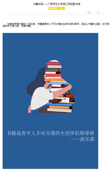 本次活动的开展增强了漓院学子抗击疫情的信心,营造了良好的阅读创意氛围,再次对获奖者表示衷心的祝贺,也希望跟更多的学子参与到阅读推广活动当中,为漓院校园文化建设添光增彩。