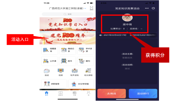 (2)在首页右上角输入邀请码lijiang2,进入学校首页,首页轮播图点击“建党100周年党史竞答活动入口”即可参与党史知识竞答。