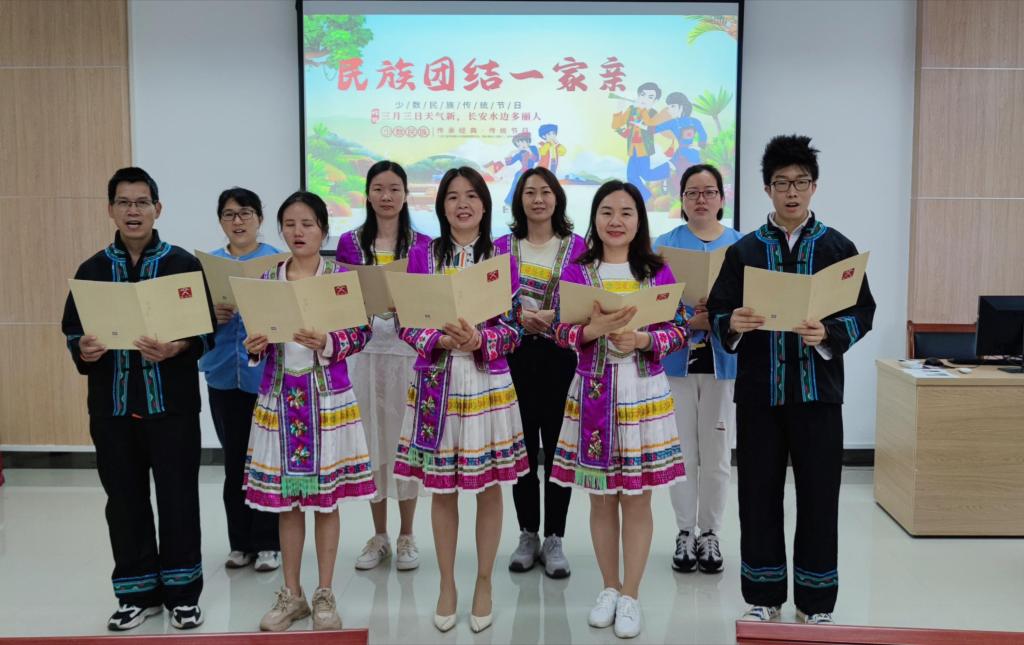为弘扬民族团结精神,展示强国有我风采。4月29日上午,图书档案党支部全体党员在图书馆报告厅开展“民族团结一家亲”主题党日活动,活动由支部副书记黄文胤主持。本次活动围绕铸牢中华民族共同体意识,结合了壮族传统节日“三月三”相关活动,讲解了民族团结进步政策,讲述了民族团结进步故事,推动了民族团结进步进校园、进课堂、进头脑。