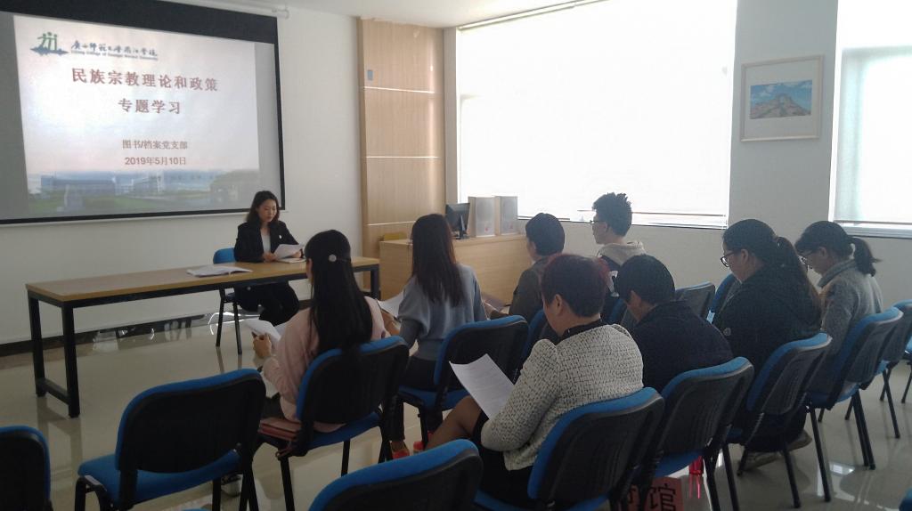 为深入贯彻党的十九大关于民族宗教工作的重要精神,认真落实党的民族宗教工作政策,更加深刻认识新时代民族宗教工作面临的新形势、新任务、新问题,进一步提升支部党员干部民族宗教工作能力,5月10日上午,图书/档案党支部开展民族宗教理论和政策专题学习会议。