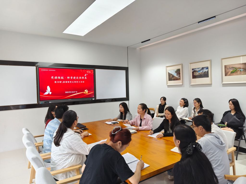 为深入贯彻党的精神,加强党支部建设,提升党员的政治素养和业务能力,图书馆/档案馆党支部于 5月27日下午开展了以“党旗领航・师资建设强根基”为主题的党日活动,会议由支部书记主持。此次活动紧密围绕党的作风建设和教育工作重点,通过专题学习教育会和视频学习等形式,取得了显著成效。