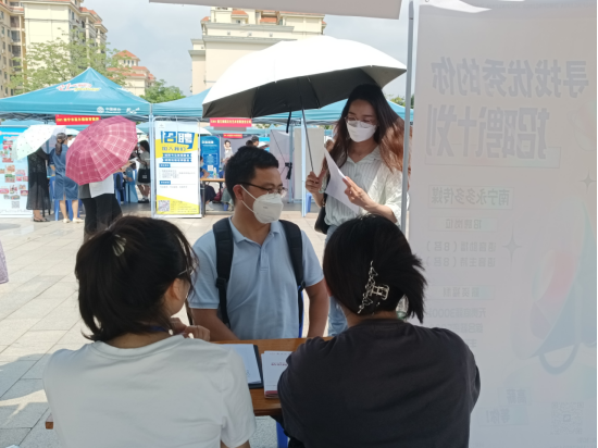 2023年5月5日上午,“2023届广西民办高校毕业生就业双向选择洽谈会暨北部湾经济区百校千企万人联合招聘就业行动”在广西外国语学院五合校区举行。
