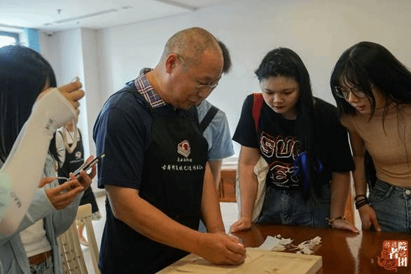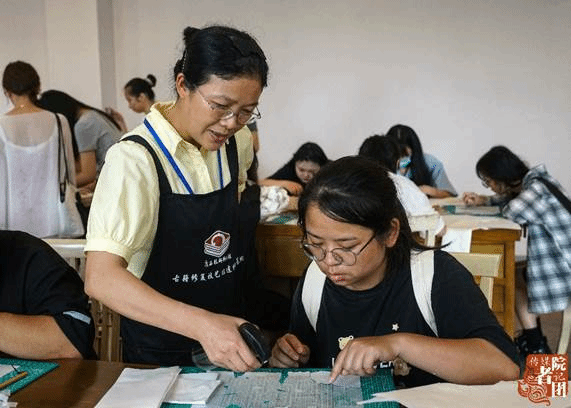 桂林图书馆古籍修复工作人员指导同学练习修复古籍