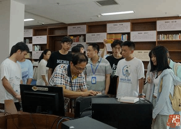 工作人员带领同学们参观地方文献馆