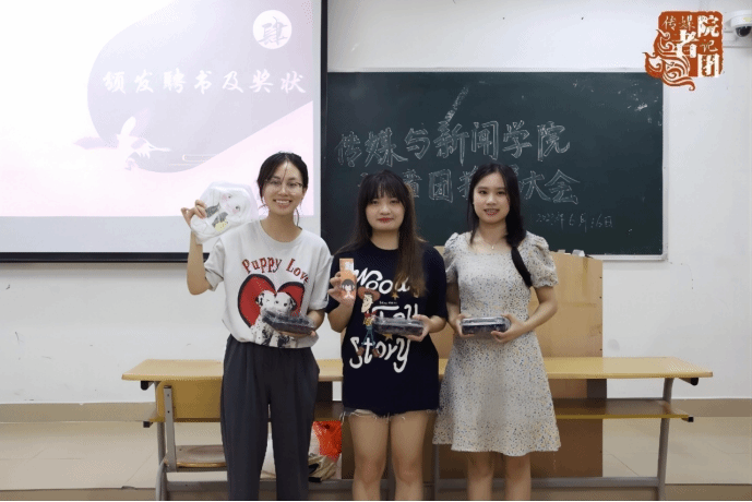 随后,王雨晗和各部门新任部长依次上台进行自我介绍。她们对老师和第十届领导团的指导表示感谢,并表明将会与新一届记者团成员们不忘初心,砥砺前行。简短的自我介绍后,“不能说的字”、“名字接力”、“甩掉便利贴”等游戏环节轮番上场,游戏过程中,参与成员们的精彩表现将游戏气氛推至高潮。游戏环节结束后,进行聘书的颁发,王雨晗为第十届领导团成员们颁发聘书并合影留念。
