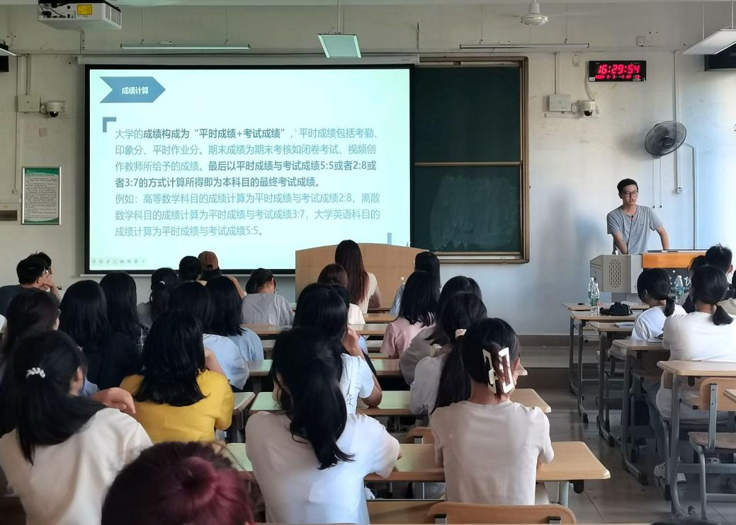 新生班级助理熊子康为新生讲解成绩的计算方法