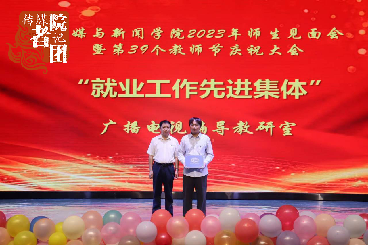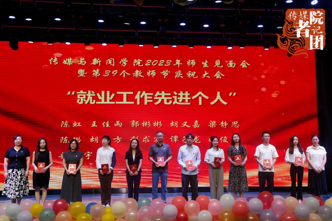 传媒与新闻学院始终坚守立德树人初心,牢记为党育人、为国育才使命,坚持全员、全过程、全方位的“三全育人”培养模式,树立“躬耕教坛,强国有我”的志向与抱负,用关爱守护青春。大会第二部分,对传媒与新闻学院2022-2023学年度就业工作表现突出的先进集体和个人进行表彰。广播电视编导专业教研室获得就业工作先进集体,陈虹等11名教师获得就业工作先进个人荣誉称号。