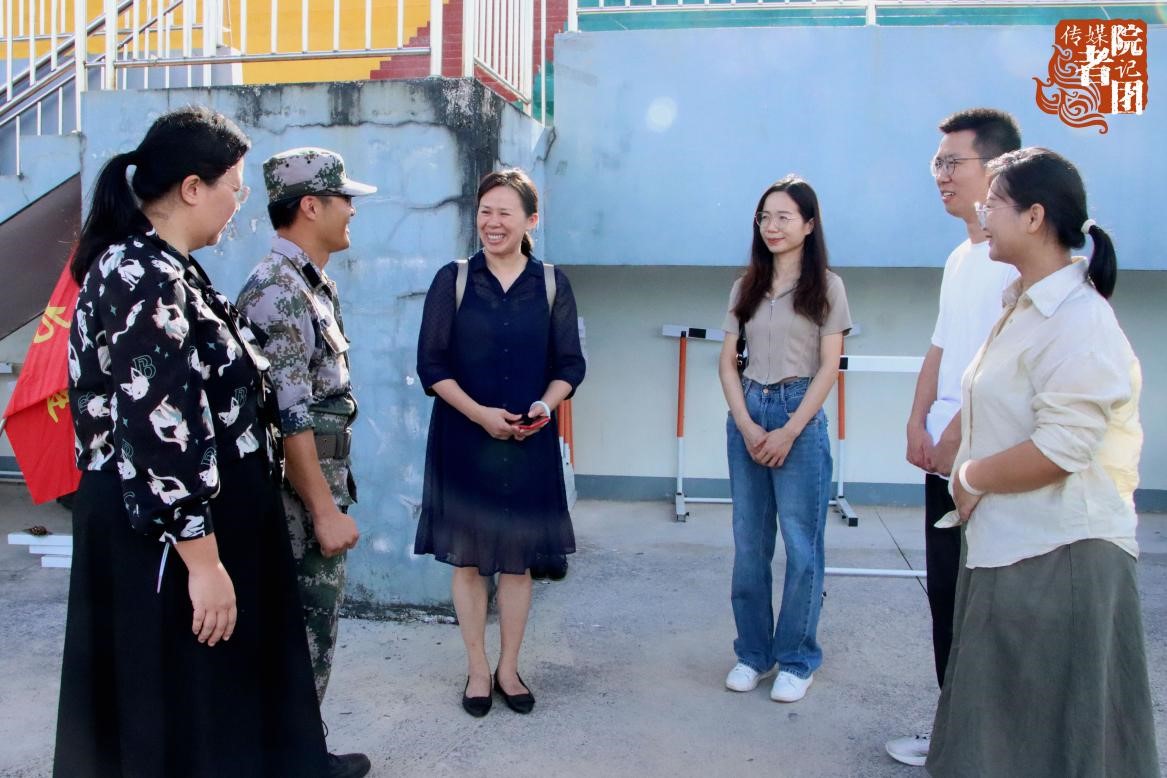 学生事务部副部长刘雪、传媒与新闻学院党总支书记翟彦、副书记李晓蕾及新生辅导员与承训教官进行交谈