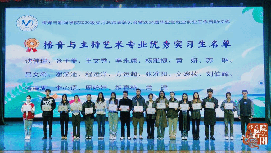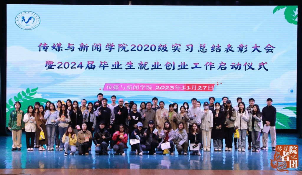 11月27日上午,传媒与新闻学院在弘善讲堂开展了2020级实习表彰大会暨2024届毕业生就业启动仪式。传媒与新闻学院院长钟毅、党总支书记翟彦、副院长胡又嘉、党总支副书记李晓蕾、崔鸿林老师、全体辅导员以及2020级全体学生参加本次大会。