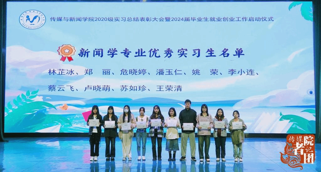 颁发新闻学专业优秀实习生荣誉证书
