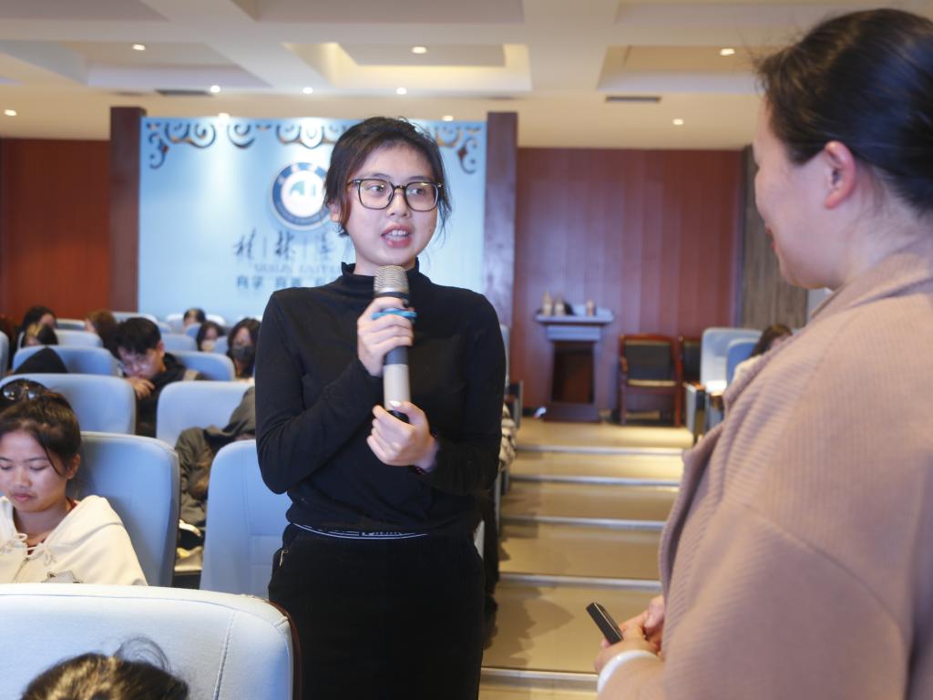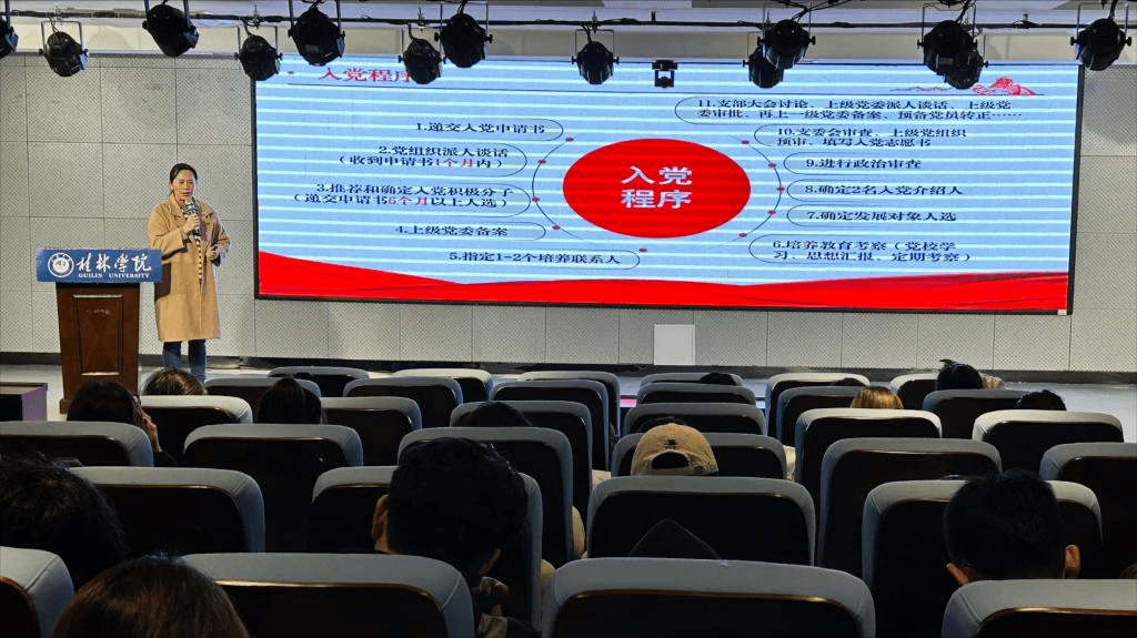 “大家对中国共产党了解吗?你想入党吗?”讲座学习会上,翟彦书记向学生提问,启发学生思考。接着,她主要围绕党的“百年光辉历程和伟大成就”“党的二十大精神学习”“党的基本知识”“树立正确的入党动机”“入党程序及入党申请书的撰写”、“如何成为忠诚干净担当的党员”六个方面进行逐一讲解。翟彦首先向同学们讲述了“新民主主义革命时期”“社会主义革命和建设时期”“改革开放和社会主义现代化建设新时期”“中国特色社会主义进入新时代时期”四大历史阶段及其取得的伟大成就,阐释了中国共产党为什么“能”,中国特色社会主义为什么“好”,归根结底是因为我们选择的马克思主义“行”。进而通过《中国共产党章程》关于党的基本知识的学习,让同学们了解了党的性质、指导思想、根本宗旨、党员权利和义务等,引导同学们向党组织靠拢。同时,引导同学们坚定理想信念,树立正确的入党动机,时刻严格要求自己,早日成为一名合格的中共党员。