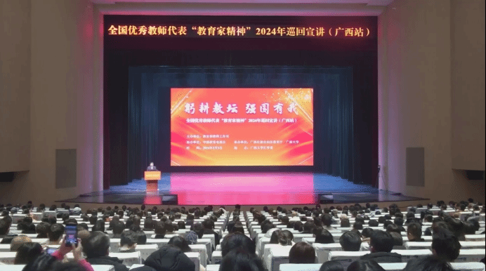 2023年9月9日,习近平总书记致信全国优秀教师代表,希望广大教师“大力弘扬教育家精神”,并深刻阐释了“中国特有的教育家精神”之内涵:心有大我、至诚报国的理想信念,言为士则、行为世范的道德情操,启智润心、因材施教的育人智慧,勤学笃行、求是创新的躬耕态度,乐教爱生、甘于奉献的仁爱之心,胸怀天下、以文化人的弘道追求。此次巡回宣讲活动以“躬耕教坛,强国有我”为主题。本场宣讲会上,全国最美教师、浙江大学教授苏德矿等6位宣讲团成员,分享了教育教学改革成果、爱岗敬业感人事迹、引领学生追求真理、帮助学生成长成才等方面典型案例,用身边人身边事,激发广大教师树立“躬耕教坛、强国有我”的志向和抱负。宣讲团教师们的事迹平凡中见伟大,质朴中显真情,引发传媒与新闻学院教职工的思考和热议。