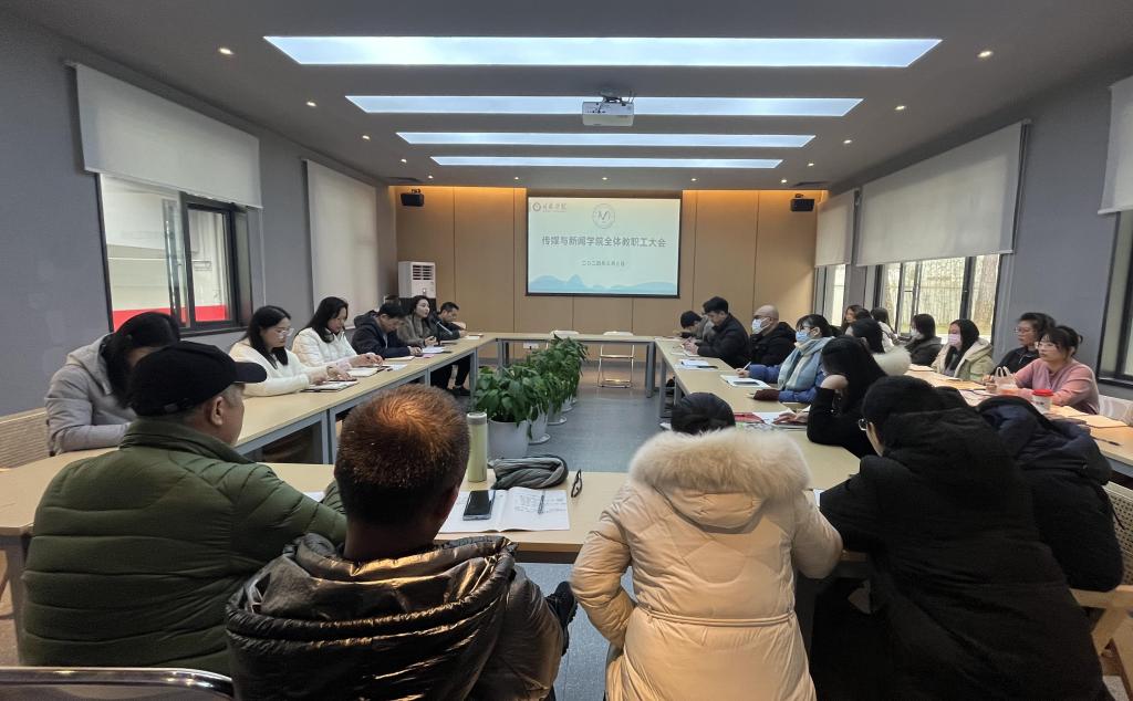 3月3日下午,传媒与新闻学院在衫湖家苑“一站式”学生社区召开新学期全院教职工大会。会议由党总支书记翟彦主持。