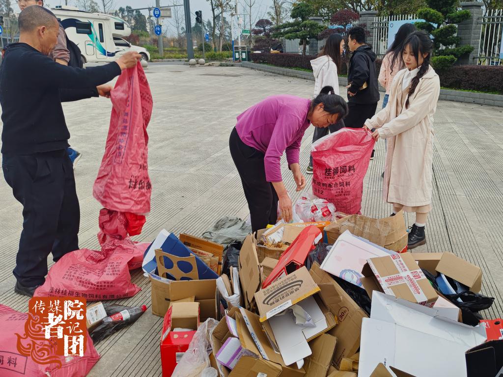 学生社区党支部成员帮助收废品叔叔阿姨清理废品