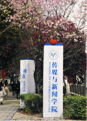 仪式上,校长杨树喆、副校长刘文革与学院院长钟毅、党总支书记翟彦共同为学院揭牌。在绚丽多彩的礼花中,红绸布徐徐落下,伴随着明媚的春光,飘零的樱花,传媒与新闻学院迎来了新的里程。相信在全体师生的共同努力下,传媒与新闻学院定能迎来更加美好的明天。