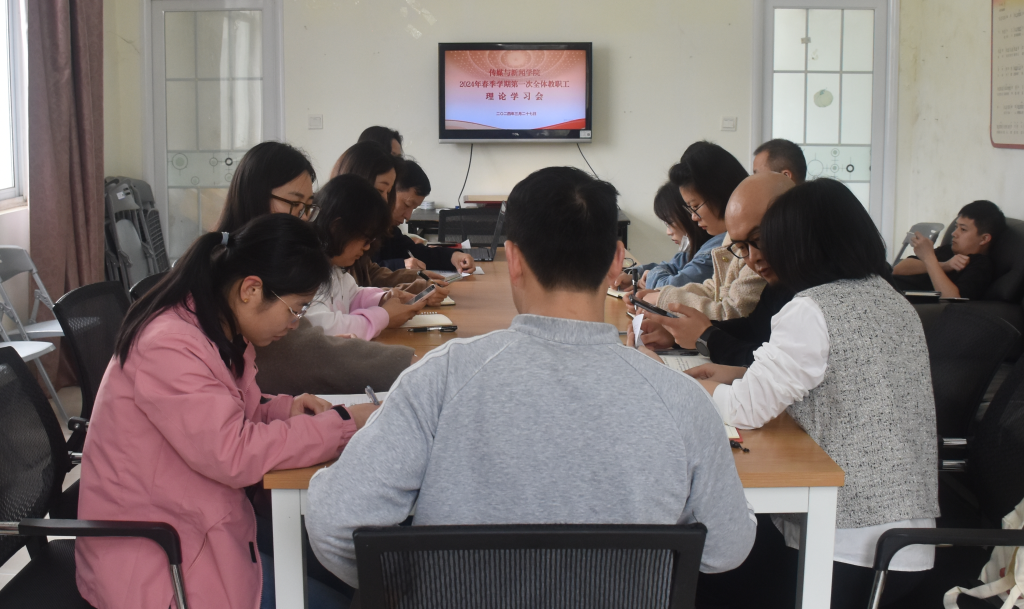 3月27日下午,传媒与新闻学院在学院二楼会议室召开本学期第一次教职工理论学习会暨师德师风专项学习会。