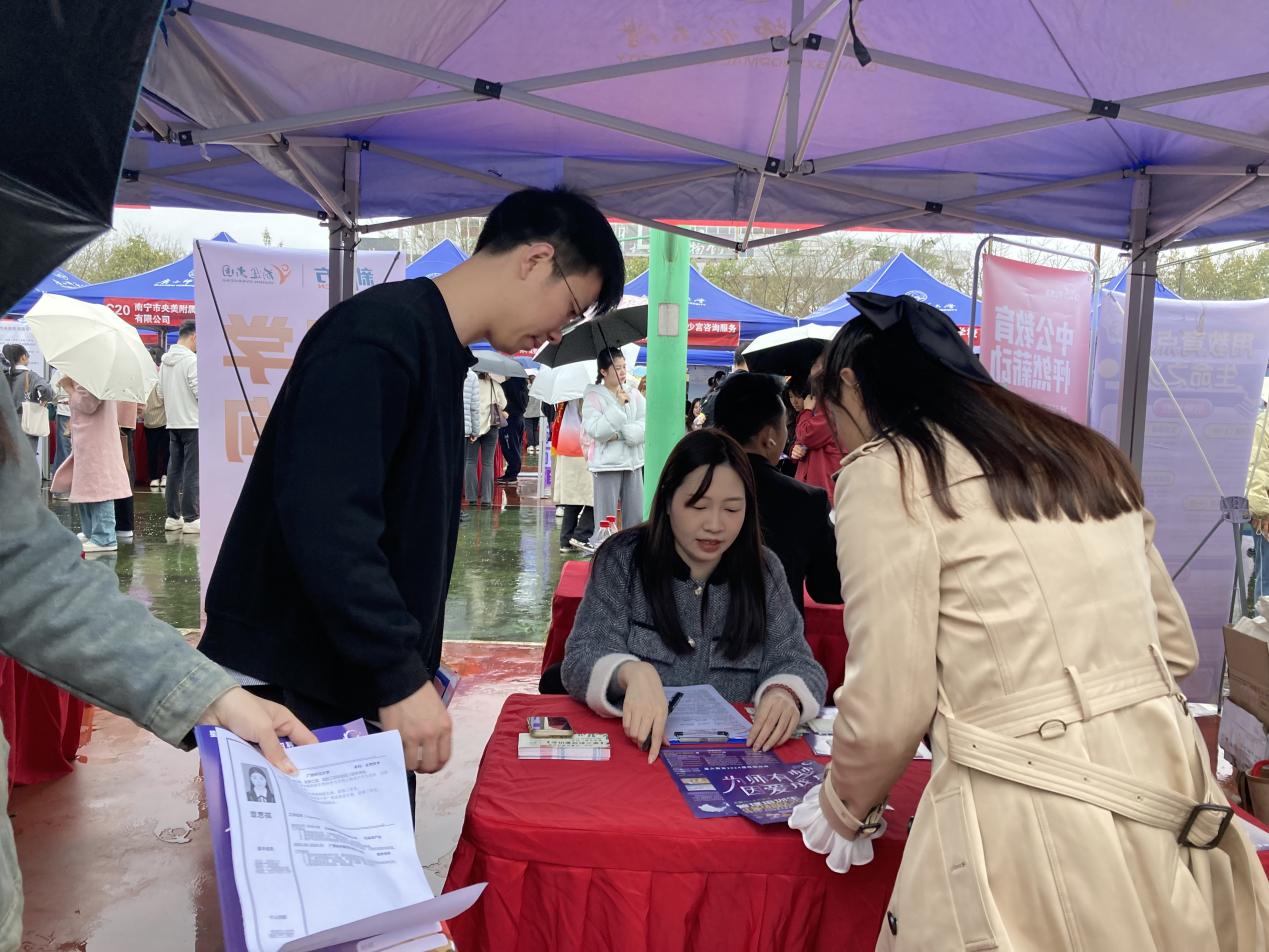 本次双选会在春季黄金期进行,参会单位质量高、领域全、岗位匹配,共吸引区内外224家单位参加现场招聘工作,其中包含各地市教育局、人社局、组织部共组团7个,教育类单位104家,非教育类单位120家,非教育类涉及金融、信息传输、软件和信息技术服务业等,总共提供岗位7000余个。传媒与新闻学院依托“访企拓岗促就业”专项行动,积极主动为用人单位和毕业生搭建就业平台。播音与主持艺术专业教研室主任郭彬彬与多家用人单位进行了深入的交流,立足播音与主持艺术专业的学科特色及学生的专业能力,进一步了解传媒行业的实际需求,为学生提供更为精准、细致的就业指导与帮扶,促进毕业的就业质量与就业能力的提升。