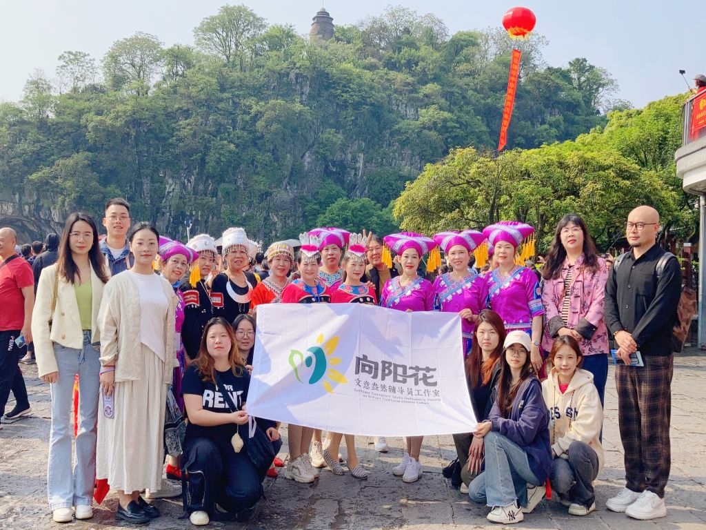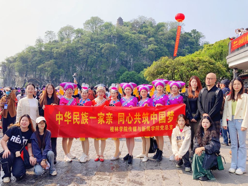 4月9日上午,传媒与新闻学院党总支组织师生党员与“向阳花”文意盎然辅导员工作室部分成员赴桂林市象鼻山公园开展“广西三月三”中华民族共同体意识主题研学活动。学院党总支副书记李晓蕾,教师党员崔鸿林、陈虹、曹依婷、王佳雨及学生党支部部分学生代表参加活动。