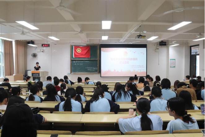 活动伊始,全体起立奏唱中国共青团团歌《光荣啊,中国共青团》,随后由主持人刘佳宁带领同学们从立足中华民族悠久历史,加强中华民族共同体理论体系建设、着眼建设中华民族现代文明,不断构筑中华民族共有精神家园、促进各民族广泛交往交流交融,以中华民族大团结促进中国式现代化、讲好中华民族故事,大力宣介中华民族共同体意识、这四点来进行知识学习,让同学们深刻认识铸牢中华民族共同体意识的历史必然性、极端重要性和现实针对性。最后播放《国歌里都在唱的中华民族从何而来?》视频,旨在让同学们能更加深入的了解到中华民族共同体意识形成的历史因素。