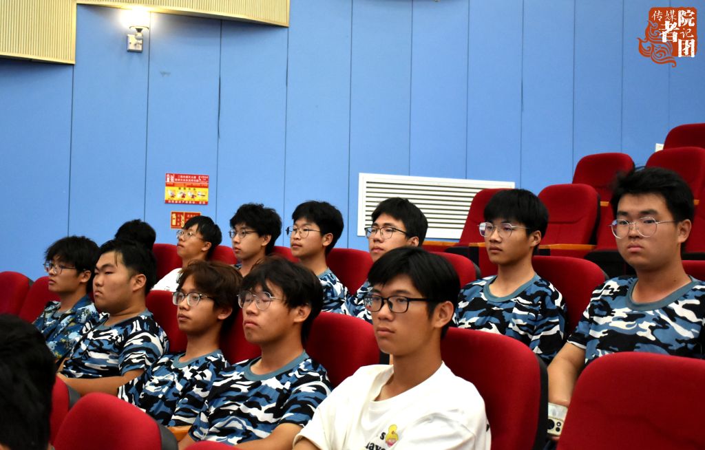 传媒与新闻学院2024级新生正在认真听讲国防教育讲座
