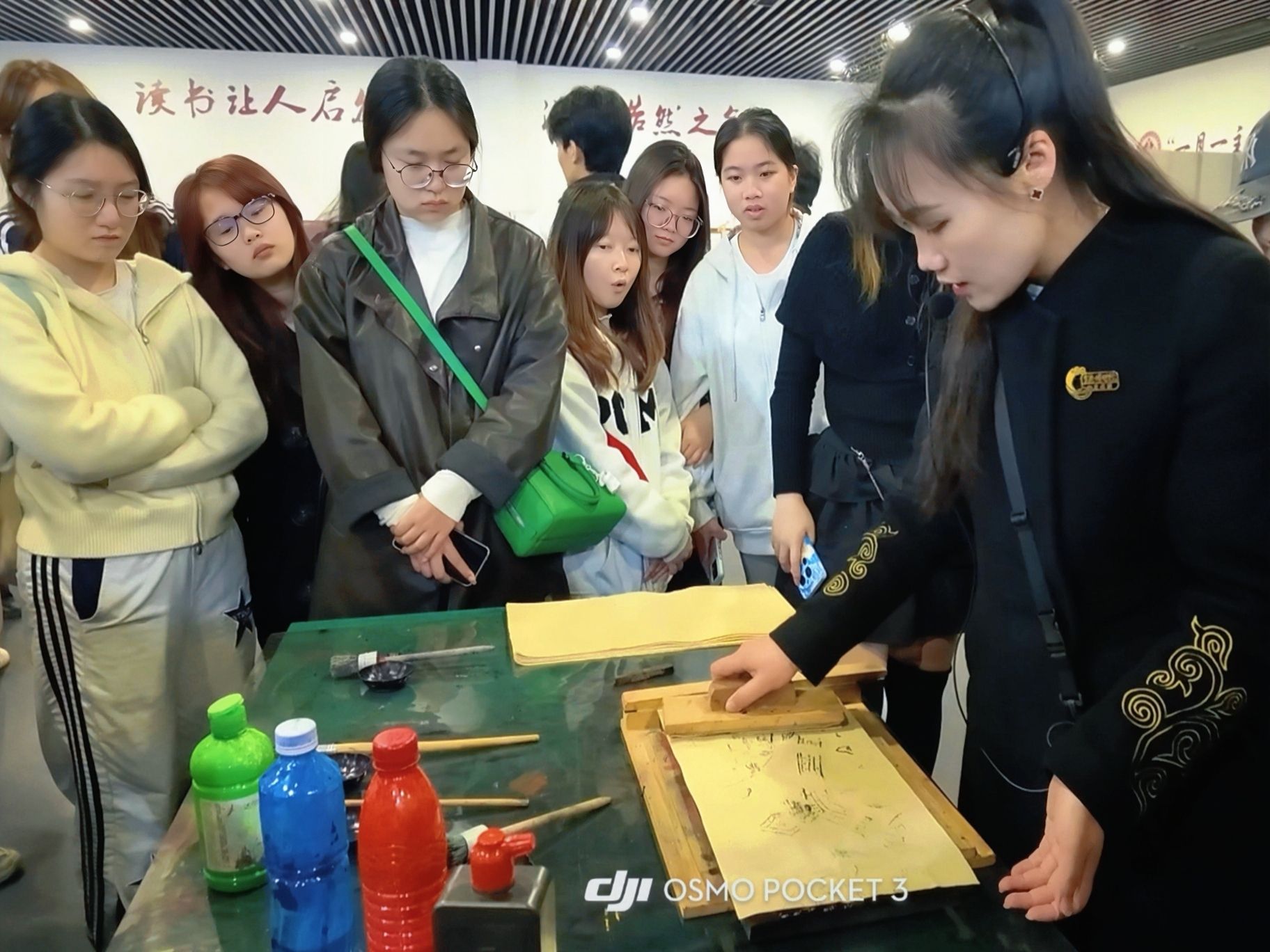 活动中,在灵渠博物院专业讲解员的带领下,同学们先后实地参观了“古邑春秋”专题展、“马舞新春——丙午马年全球生肖文化大联展”“斑斓彩绘民族梦·盎然春色满灵渠——兴安(漠川)乡土绘画(农民画)新春特展”。现场参与了非遗拓片传承活动、非遗套色版画活动、渠工巧筑科普活动等丰富多彩的匠心传承系列文化活动。