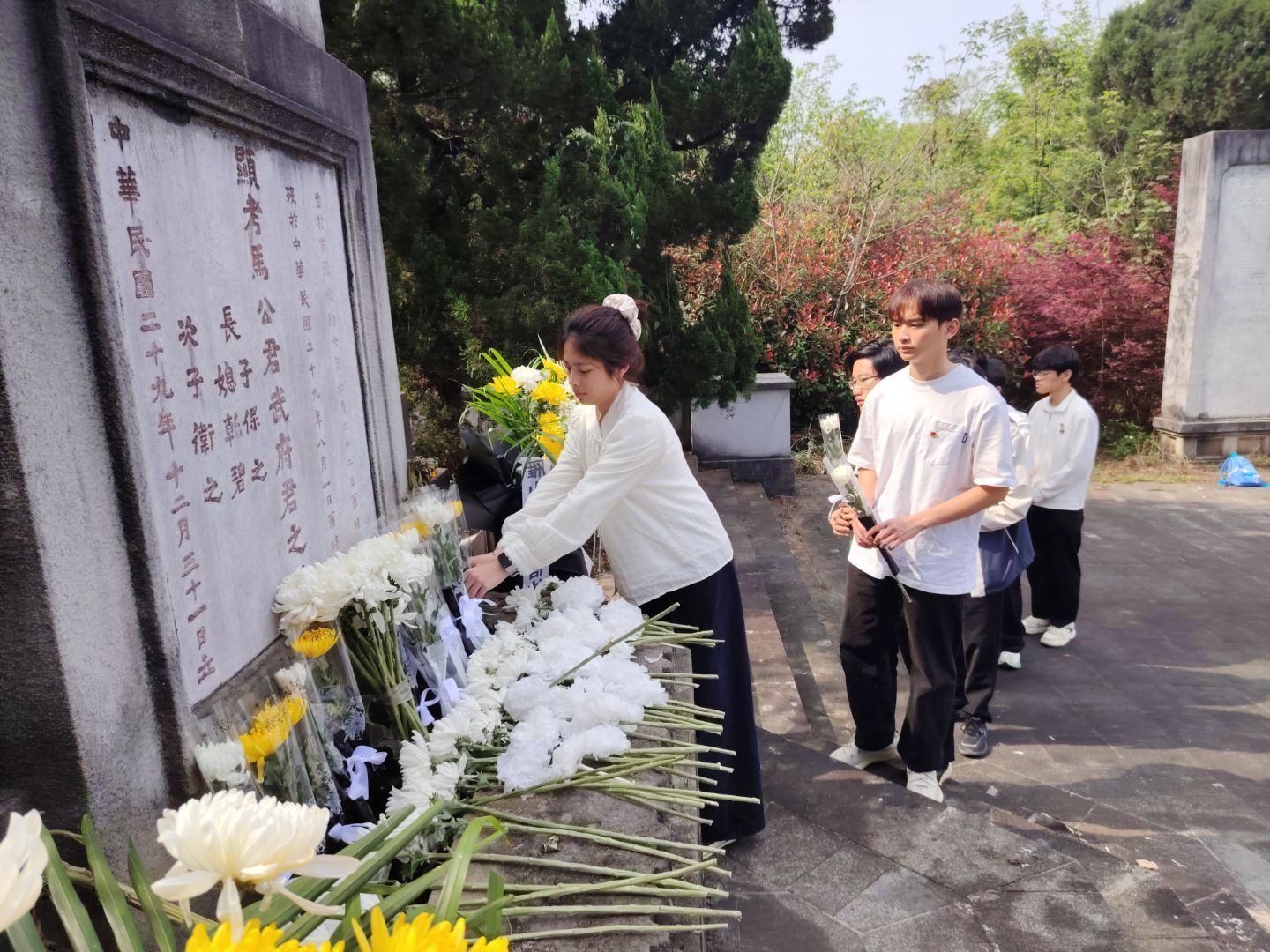 到达墓园,全体人员整齐列队,肃立于马君武先生墓前。活动在庄严肃穆的氛围中拉开帷幕。全体人员向马君武先生深深三鞠躬,表达对这位中国近代著名政治活动家、教育家的深切缅怀与崇高敬意。