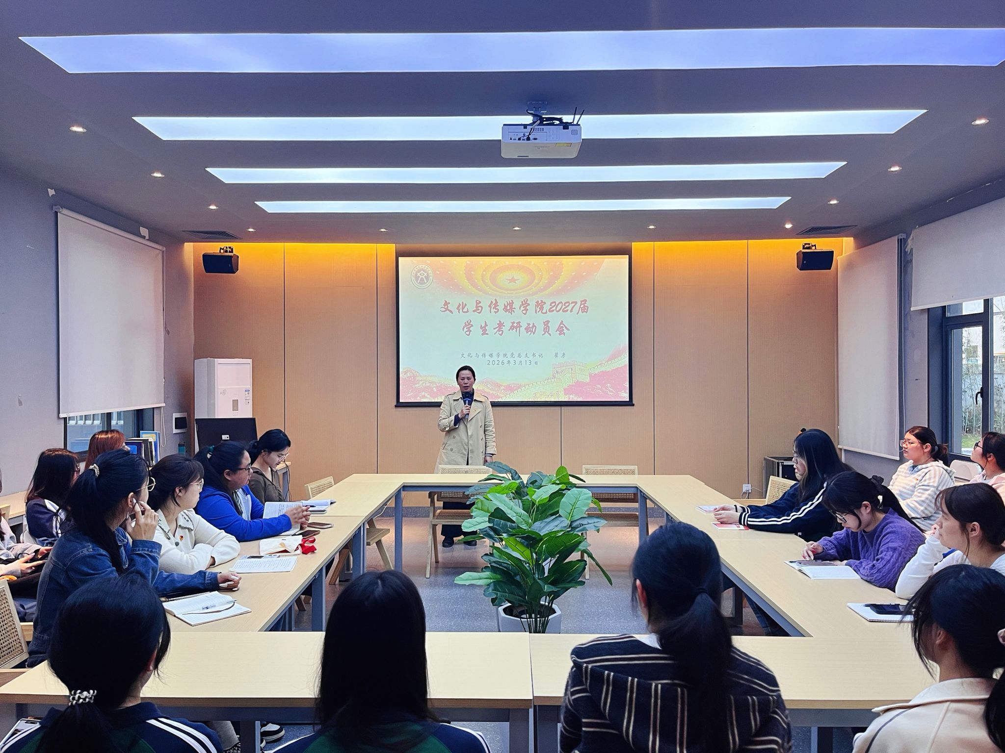 为进一步激发2027届学生考研热情,帮助学子明确备考方向、理清备考思路,3月13日下午,文化与传媒学院在杉湖家苑“一站式”学生社区辅导员工作室召开2027届学生考研动员会。会议由学院党总支书记担任主讲,2027届有考研意向的各专业学生代表参会,共赴这场研途启航之约。