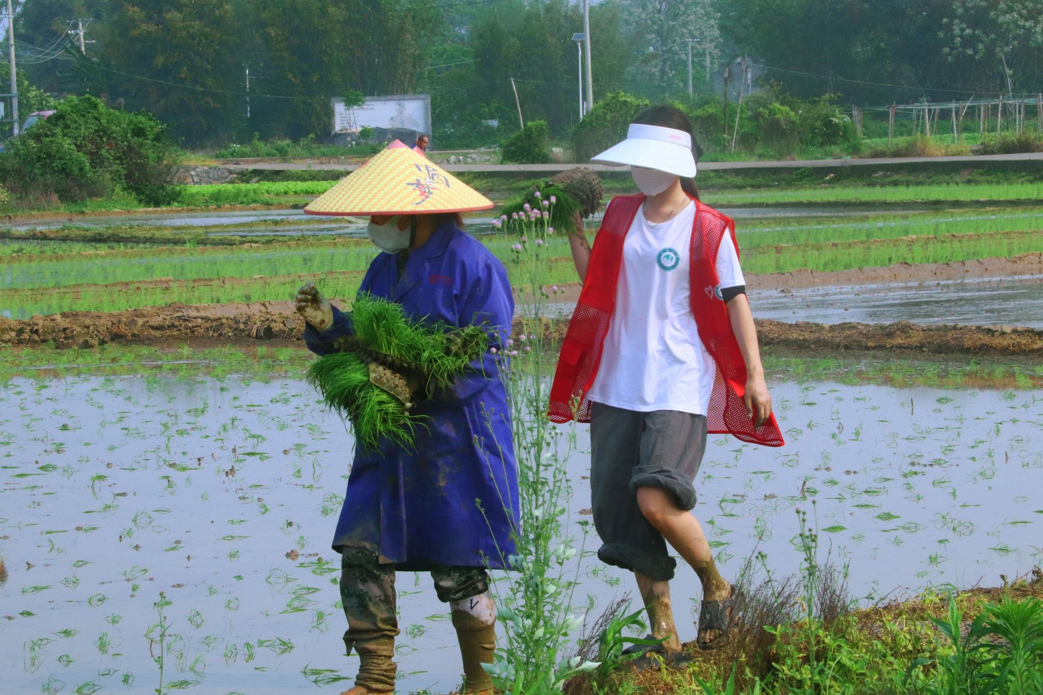 劳作期间,成员们不怕苦累,主动向农户请教技巧,在实践中体会农耕艰辛、收获协作快乐,同时与农户深入交流沟通。经过一上午的辛勤劳作,嫩绿秧苗整齐扎根田间,孕育着丰收希望,也展现出新时代青年的责任与担当。