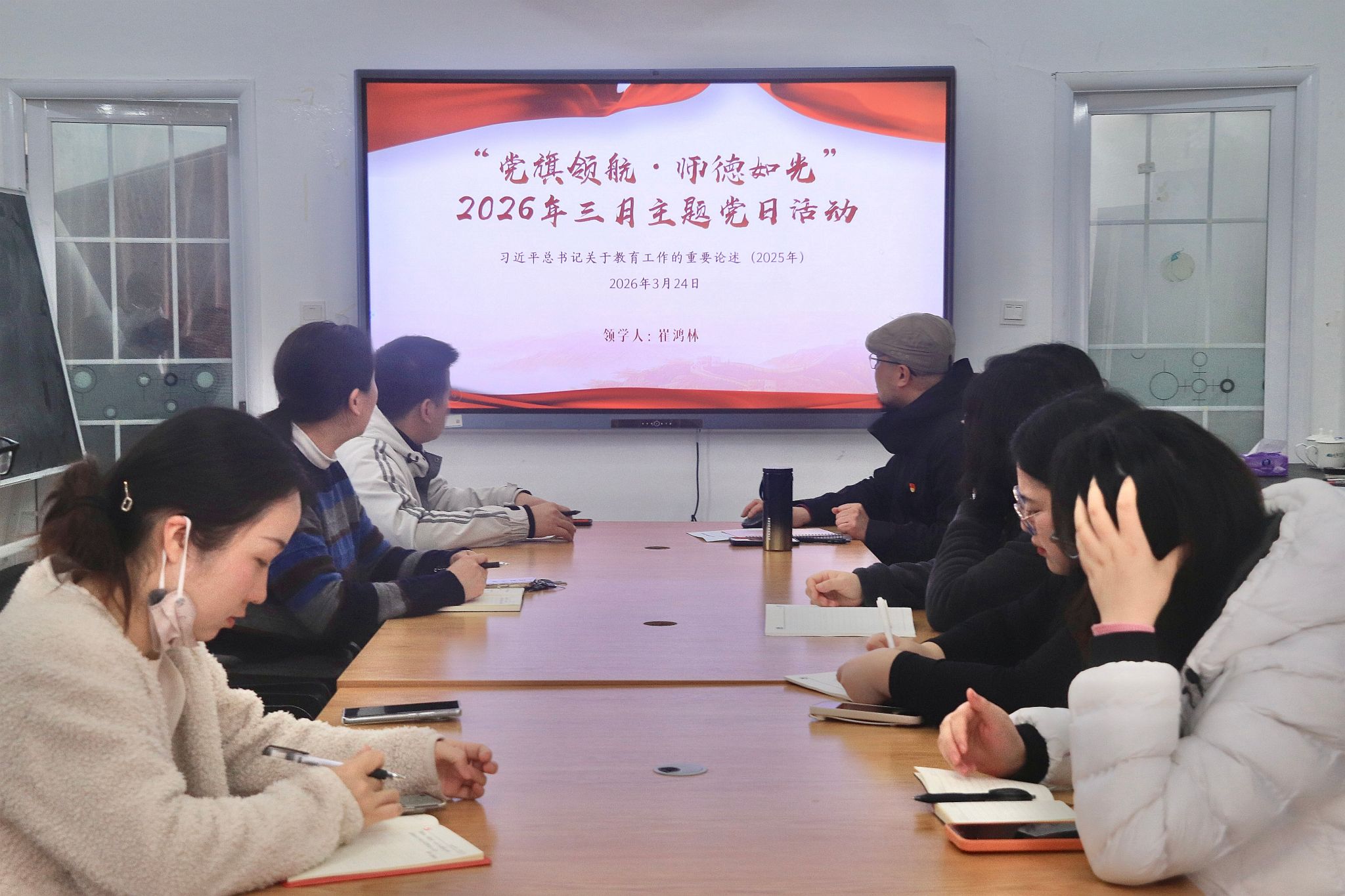 活动落实“第一议题”制度,党支部副书记领学习近平总书记关于教育的重要论述,引导党员深刻领会立德树人根本任务的核心内涵。同时,围绕“十五五”时期教育新使命,集体学习“十五五”规划纲要中教育工作相关部署。会上,党支部副书记还带领党员重点学习了党和国家宗教工作相关法律法规和政策,并结合典型案例分析,做好统一战线工作,坚守课堂意识形态底线,守好校园思想防线。