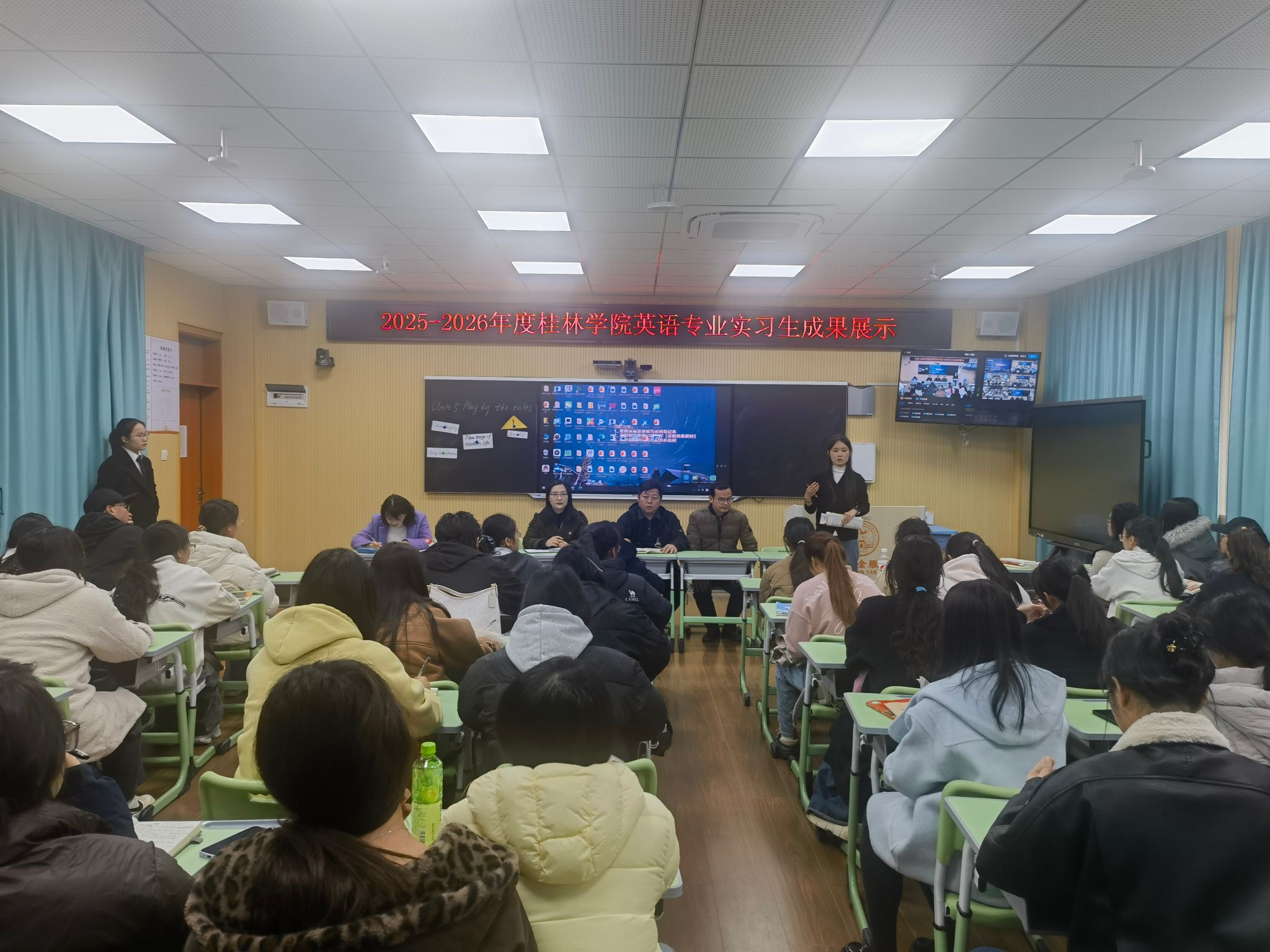 12月3日下午,外国语学院与金雁学校联合举办英语专业实习生教学成果展示暨见习活动。活动以初中英语课堂教学为核心,聚焦外研版教材内容,通过实习生现场授课、资深教师专业点评、在校生观摩学习的形式,搭建了实践与教研深度融合的交流平台,助力师生教学相长。