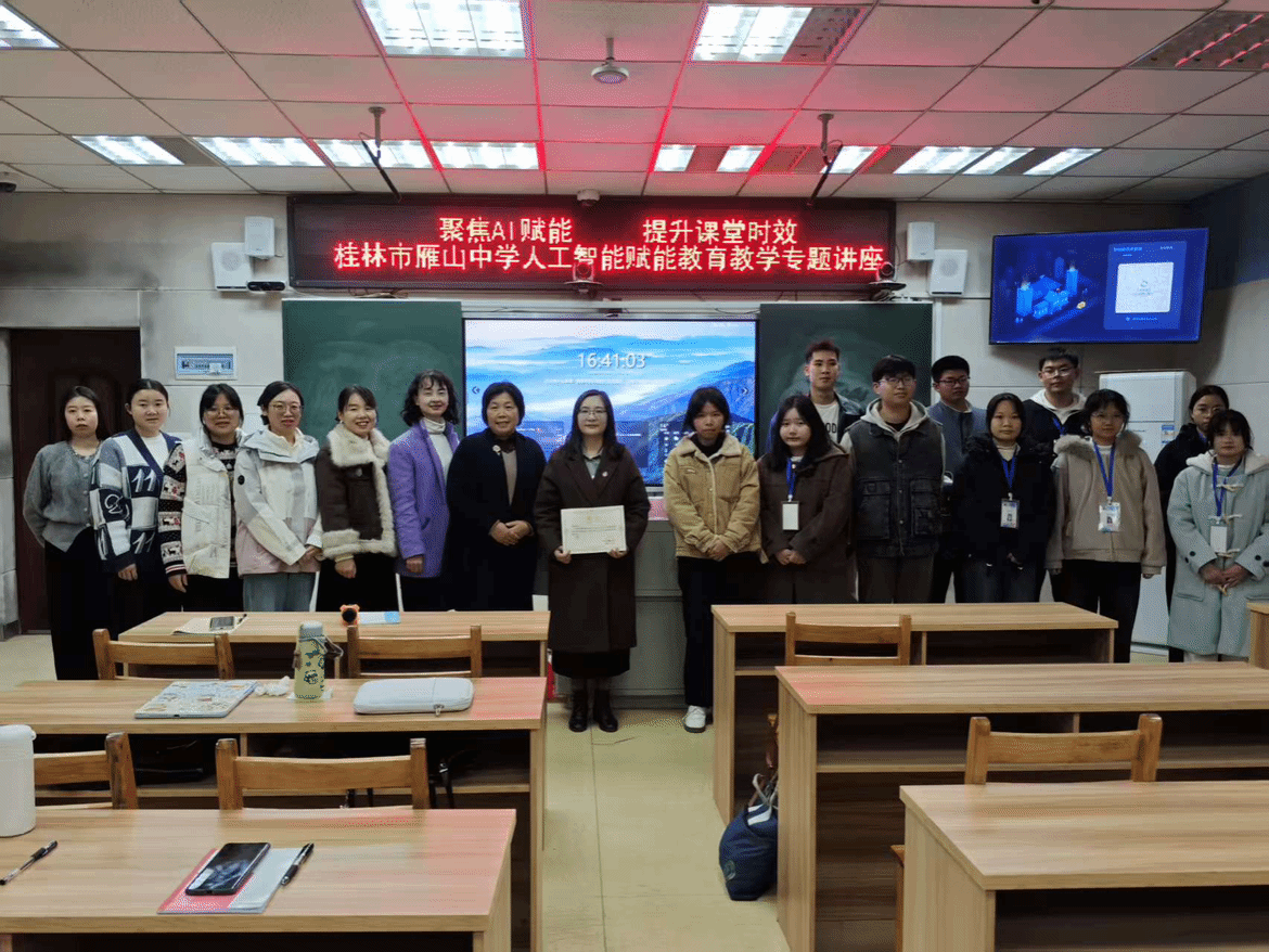 此次专题讲座是学院与雁山中学深化基高联动的重要举措,通过校院携手搭建交流平台,将AI技术与教学实践深度结合,既拓宽了教师的教学思路,又提供了可直接落地的技术支撑,为课堂提质增效注入新动能。据悉,双方后续将持续以联合教研、实习实践等形式深化合作,持续探索教育数字化转型新路径,共同推动教学质量稳步提升,为学生核心素养发展蓄力赋能。