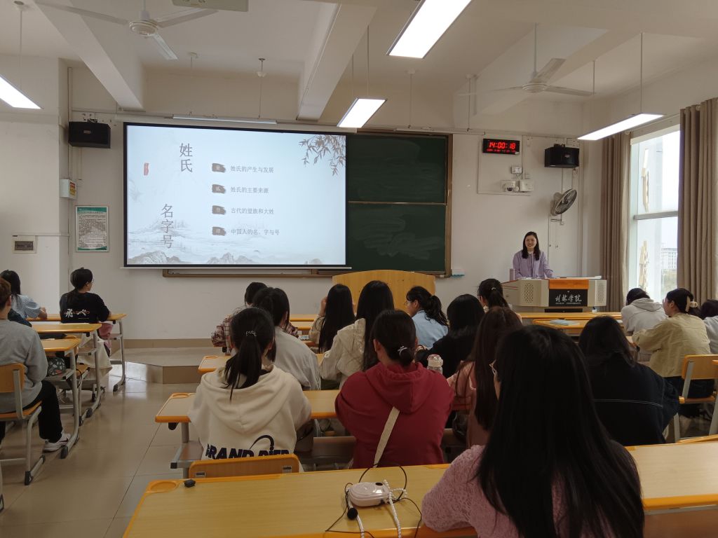 本次授课内容为中华姓氏文化。课堂上,张佳敏从“以字识古今”切入,结合历史文化维度,系统阐述中华姓氏的产生与发展,并借助多元化教学手段开展教学,循序渐进,层层深入,使学生深入理解中华姓氏文化。教学过程中融入师生互动、生生互动,激起学生对中华优秀传统文化的求知欲望,营造出良好的课堂氛围,取得较好的教学效果,培养了汉语国际教育专业学生的文化素养。