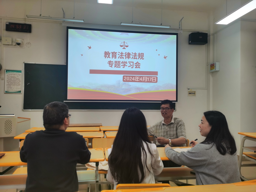 4月17日下午,人文学院中文教师教育教研室全体教师召开了富有实效的教育法律法规专题学习会。会议紧扣师德师风建设与法治教育,旨在增强教师的法律法规意识,规范师德行为,涵养高尚师德。