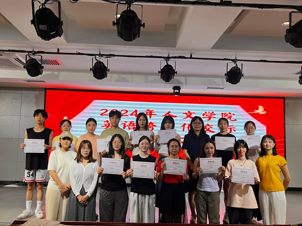 为增强新时代大学生的跨文化交际意识和外语能力,人文学院举办跨文化交际能力大赛。本次比赛由英语文学文化教研室负责组织。比赛吸引了40多个团队参加,涉及21级至23级三个年级200多名英语类专业学生。经过评审老师认真细致地评审打分,共有15个团队获得了奖项,其中特等奖1个,一等奖2个,二等奖3个,三等奖4个,优秀奖5个。6月26日下午,在至善讲堂举行了隆重的颁奖仪式,评审老师黄彦立、欧炼芬、练诗萌、苟鑫蕊以及各个获奖团队代表参加了颁奖仪式。