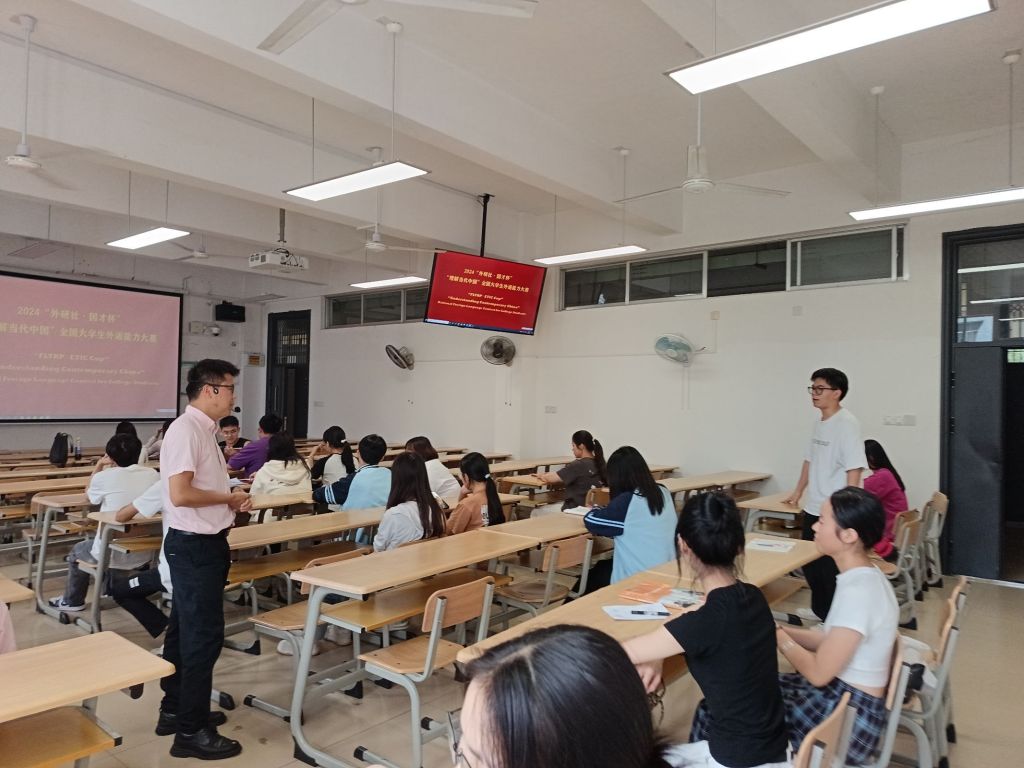 9 月 25 日下午,为助力同学们充分做好“理解当代中国·外研社·国才杯”英语演讲赛准备,人文学院在至善楼1311教室举行2024年“‘外研社·国才杯’英语演讲比赛校赛解读与备赛辅导”讲座,学校英语协会指导老师覃浩主讲。