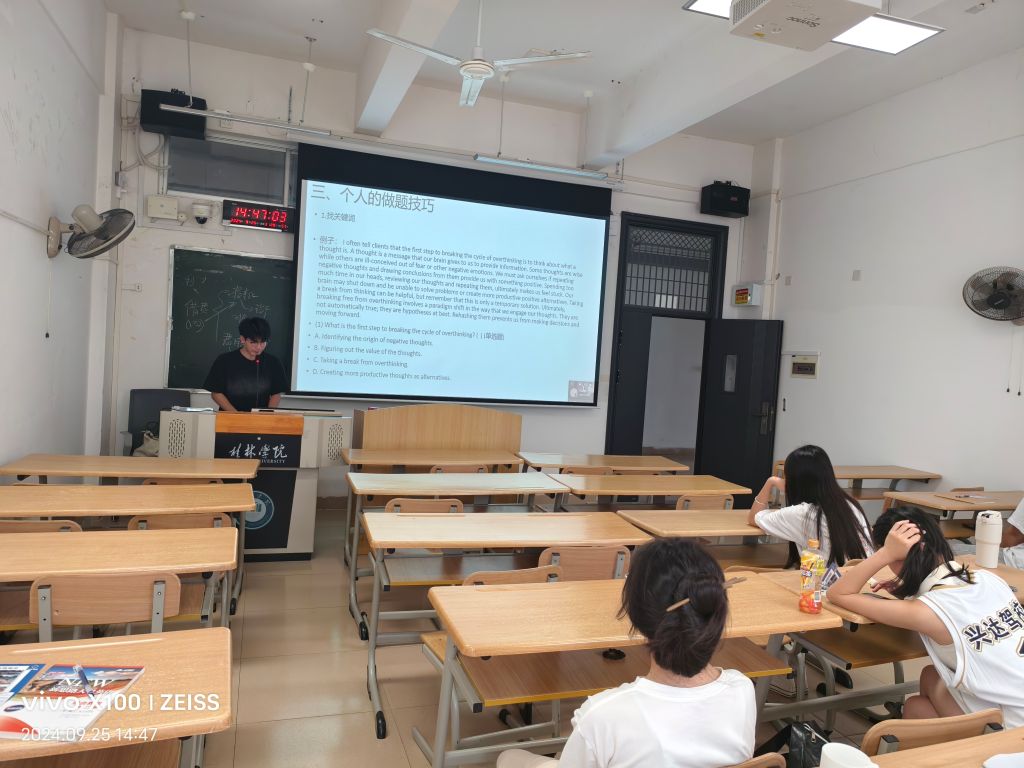 为帮助我校学子备考2024年“外研社·国才杯”英语组综合能力大赛,人文学院负责该赛项的蔡晓明、刘惠萍两位老师分别于9月25日、27日开展了两场面向全校学生的赛前指导讲座,分别聚焦综合能力赛项的两大部分—阅读理解和写作。