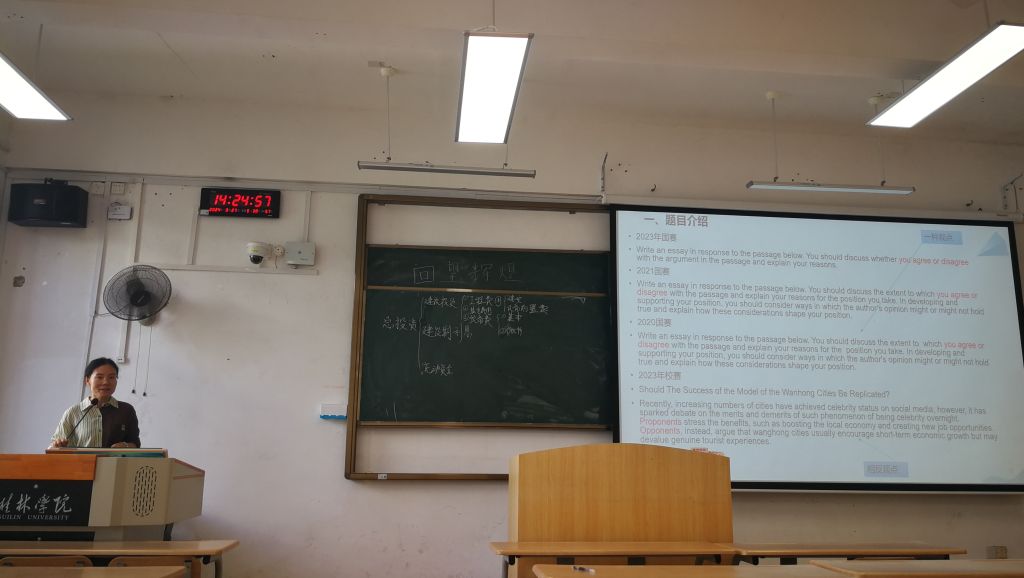 在备赛写作讲座中,刘惠萍老师深入剖析了历年写作题目,提供了审题的策略和技巧。她详细阐述了如何构思文章结构,确保内容的逻辑性和条理性。此外,老师还选取了两篇往届考生的作文作为案例,分别从正面和反面展示了审题的重要性,指导学生如何准确把握题目要求,避免常见错误。