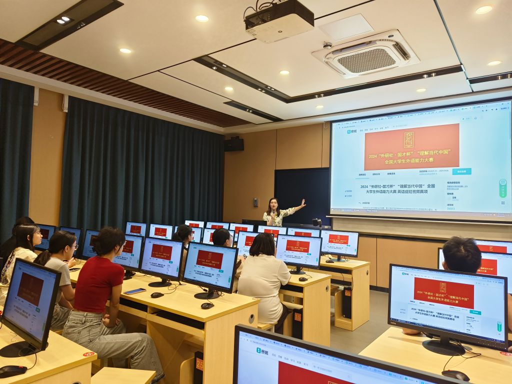 9月26日晚,人文学院在2201现代教育技术实训室举办了2024年“外研社•国才杯”英语组短视频赛项的赛前辅导讲座,由赛事负责教师汪婧主讲。