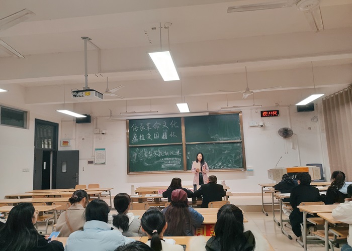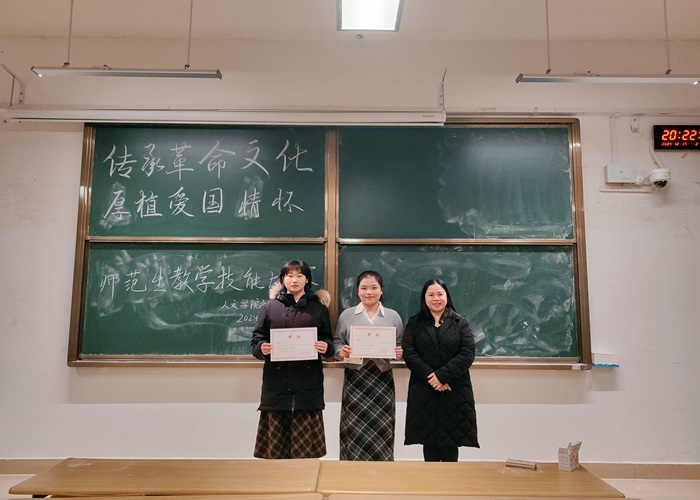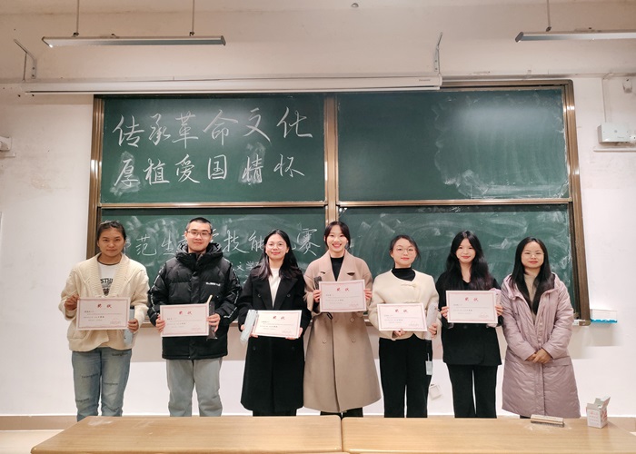 本次比赛以“传承革命文化,厚植爱国情怀”为主题,采用现场抽题备课和模拟上课的形式,考查学生的教育教学能力与口语表达能力。赛上,12名选手依次进行教学技能展示,现场优异的讲课表现充分展现人文学子积极向上的精神风貌。经评选,决出罗珺彦、蒙可蕊获一等奖,谢敏英等4人获二等奖,李佳琪等6人获三等奖。