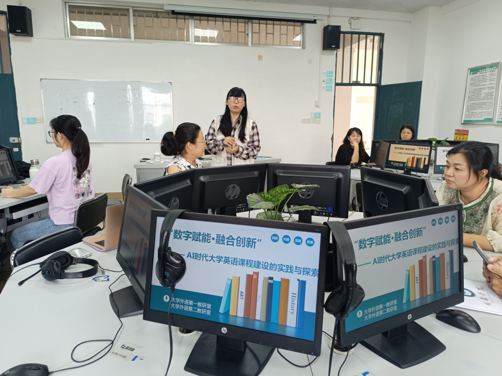 为深化教育教学改革,加强教师职业技能,5月14日下午,外国语学院大学英语第一、第二教研室召开AI时代大学英语课程建设研讨会。教研室教师面对面交流,围绕AI时代大学英语课程的教学质量提升、技术融合路径及学生学习需求展开深入探讨。