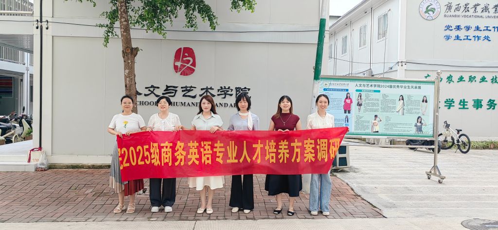 为进一步推动商务英语专业教育改革与高质量发展,6月18日至26日,外国语学院商务英语专业骨干教师周燕萍赴南宁市先后走访广西财经学院、南宁职业技术大学、广西农业职业技术大学等应用型高校,围绕2025级商务英语专业人才培养方案开展专题调研与交流。