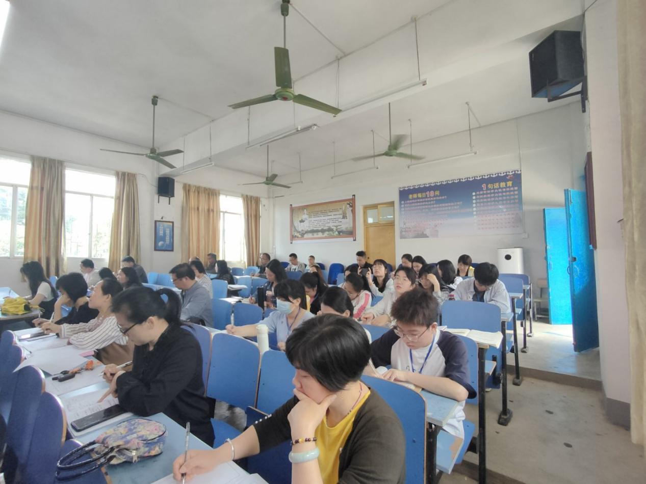 两次“同课异构”活动结束之后,我院潘冠海教授、赵荣新副教授以及全体实习生和六塘镇初级中学语文组的老师们集中在阶梯教室进行评课。四位授课老师依次上台阐述自己的教学设计并做教学后的反思、总结。六塘镇初级中学的其他老师和我院潘冠海教授、赵荣新副教授也发表了自己的意见,并针对古文教学提出了具体的实施建议,鼓励年轻老师们深耕文本,注重学情,扎实做好教学工作。