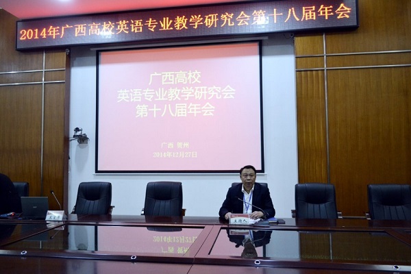 本次年会分别邀请了朱刚(南京大学)、覃修桂(广西民族大学)、李晓(广西师范学院)、傅广生(桂林理工大学)、刘绍忠(桂林电子科技大学)等几位专家作了精彩的专题发言;与会老师代表就广西高校英语专业发展、实践教学的开展、课程建设、师资队伍提升等内容进行了深入的交流探讨;应大会组委会邀请,我系教师代表在大会上展示了外语系2014年广西教育教学多媒体软件大赛的三个获奖作品《新思路大学英语视听说II》、《中学英语教学法》、《听力口语口译技能-英语实训专题》,课件丰富的内容、实用性的体现以及教师精彩的讲解都得到了与会专家及代表们的一致肯定。