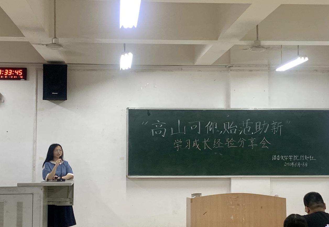 为促进我院学子专业素养成长和专业技能提升,实现新老互助,共同进步,语言文学学院行知社响应学院广大师生号召,于6月8日晚在至善楼1207教室举办了“高山可仰,贻范助新”学习成长经验分享会。